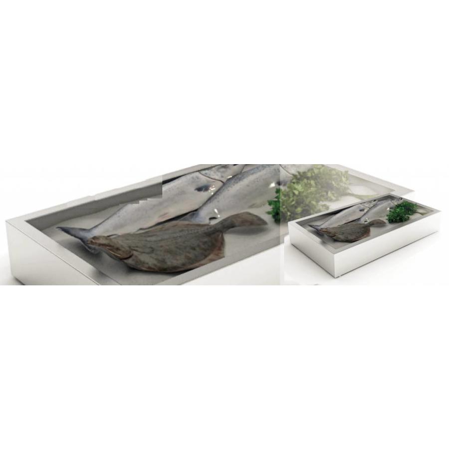 Crushed-Ice-Behälter von combisteel sind einfach zu handhaben. Die Behälter halten Ihre Produkte, wie zum Beispiel Fisch, kühl. Es verleiht ein professionelles Aussehen.