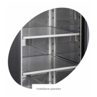 This backbar cooler is equipped with 4 self-closing glass doors. The doors of this cooling are not reversible. This is a ventilated cooling with a power of 320 W.