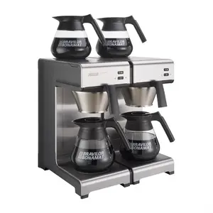 Bravilor Mondo Twin: a powerful 3460W double coffee maker with manual water fill, a quick-filter system, and four self-regulating warming plates. Brews two 1.7L decanters in 5 minutes. Ideal for locations without a water connection.