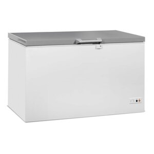 Energy-efficient 200L steel display chest freezer with a sliding glass lid and three baskets. Temperature range -24°C to -18°C, easy-to-use digital control panel, sturdy casters, rounded corners for easy cleaning and efficient manual defrosting.