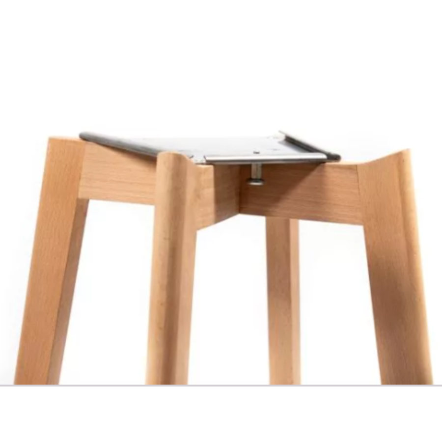 This trendy and sleek bar stool with armrest distinguishes itself from similar chairs by its stackability. The chair can be assembled with different Keeve seats and bases.