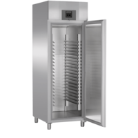The Liebherr BKPv 6570 is a bakery refrigerator in stainless steel with chrome nickel steel interior according to bakery standard. The temperature range is digitally adjustable per degree from -5°C to +15°C and the humidity can be set to high, medium or l