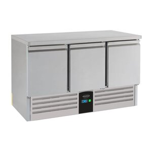This high-quality saladette combines a robust stainless steel worktop with a powerful 257-liter fan-cooled cabinet, perfect for keeping salads, toppings, and other ingredients fresh. Thanks to its two self-closing doors, clear layout with GN racks, and digital temperature control, this is the ideal refrigerated counter for restaurants, lunchrooms, pizzerias, and food trucks.