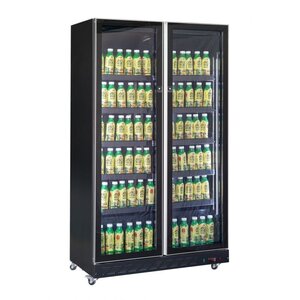 HorecaTraders Refrigerator | 2 glass doors | LED lighting | Forced | 1027 x 459 x 1755 mm