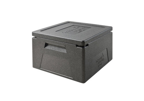 Thermo Future Box GN 1/1 Premium fabriqué en EPP noir. Les poignées encastrées sur les côtés longs offrent suffisamment d'espace pour retirer les récipients GN chauds ou lourds.