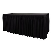 Pour une finition soignée, utilisez notre jupe de table et notre nappe de couleur crème ou noire spécialement conçues en une seule pièce, dans des styles à plis creux ou plissés, donnant la touche finale parfaite.