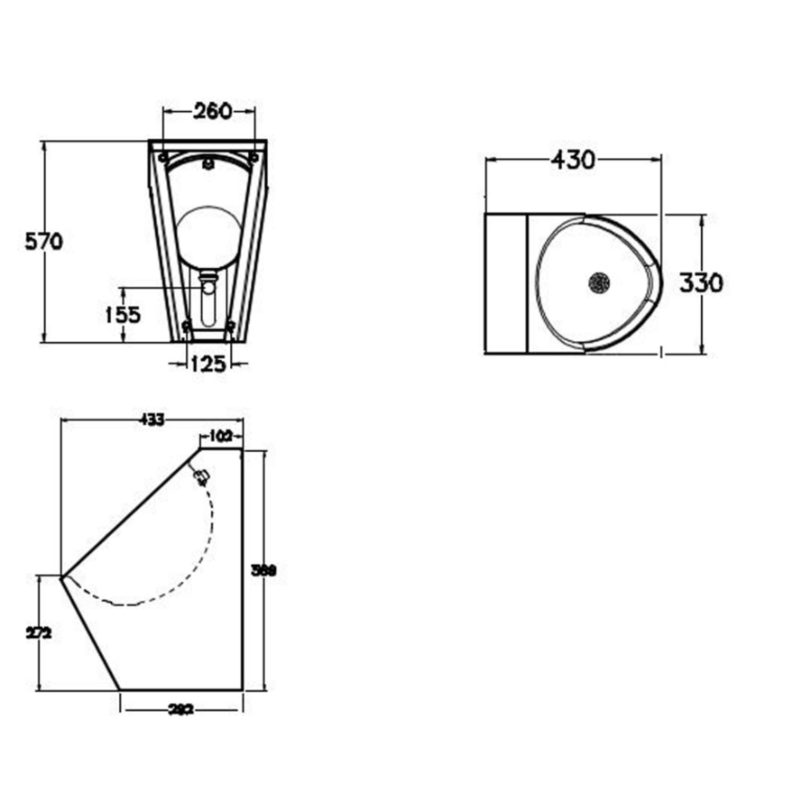 HorecaTraders Urinoir en acier inoxydable | L 330 x P 433 x H 570 mm