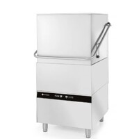 Eenvoudige en krachtige professionele vaatwasser met elektronische regeling, dispensers voor wasmiddel en glansmiddel, en afvoerpomp. Ideaal voor borden, bestek, glazen en GN 1/1 containers. Met 3 wasprogramma's, "Soft Start"-functie en zelfdiagnosesystee