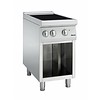 Inductie kooktoestel met 2 krachtige kookzones, het inductietoestel heeft een handige onderbouw waar je potten en pannen in kwijt kunt. De zones hebben een doorsnede van 26 cm. Geschikt voor de grote keuken.