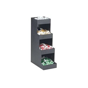 Praktische zwarte organizer voor het overzichtelijk opbergen van suikerzakjes, melkcups, roerstaafjes en rietjes. Dit compacte toonbankmodel is eenvoudig bij te vullen en ideaal voor zelfbedieningsbuffetten of koffiecorners. Afmetingen: 208x637x241mm.